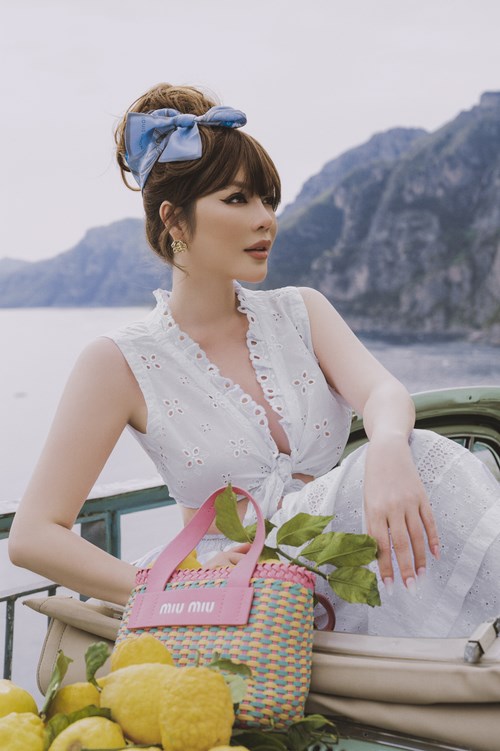 Trong bộ ảnh thực hiện tại Positano nước Ý, Lý Nhã Kỳ xuất hiện với vẻ nữ tính, cổ điển trong trang phục thuộc dòng thời trang casual của nhà mốt Lê Thanh Hòa, Tùng Vũ.