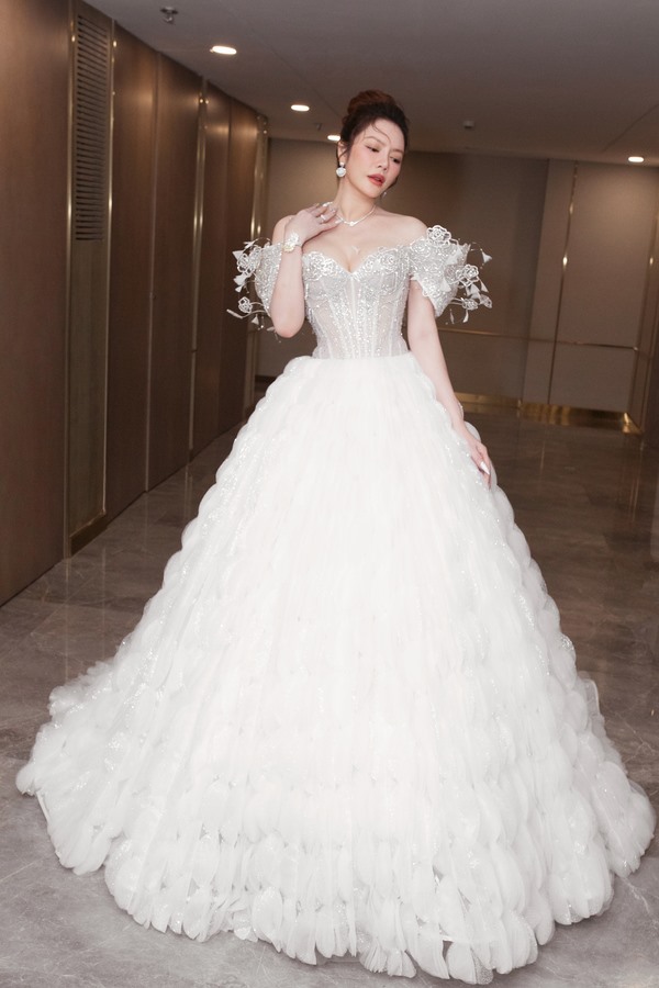 Khoảnh khắc Lý Nhã Kỳ catwalk trên sàn diễn thời trang, “bà trùm kim cương” diện váy lấy cảm hứng từ những đám mây với kỹ thuật tạo khối dựng cấu trúc thủ công trên nền chất liệu lưới dập ly. Váy cưới siêu nhẹ và bồng bềnh, tinh tế. Váy của Hacchic tạo nên cơn sốt về tùng váy gợn sóng trong thời gian gần đây. Phần thân váy đi khối hoạ tiết đá pha lê tạo hình thu gọn vòng eo và tôn lên khuôn ngực người mặc. Cô không quên hoàn thiện bằng set trang sức kim cương 1 tỷ đồng gồm nhẫn, hoa tai, vòng tay, dây chuyền, trong đó đắt nhất là vòng tay lấy ý tưởng từ trái tim.