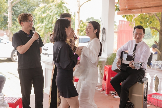 Đến chung vui cùng gia đình cô là những anh em nghệ sĩ thân thiết: Nguyễn Hưng, Thanh Bạch, Đại Nghĩa, S.T, Nam Thư, Phạm Lịch, Hiếu Thứ Hai (thí sinh King of Rap), diễn viên Quốc Cuờng, Lợi Trần, MC Nhật Trường…