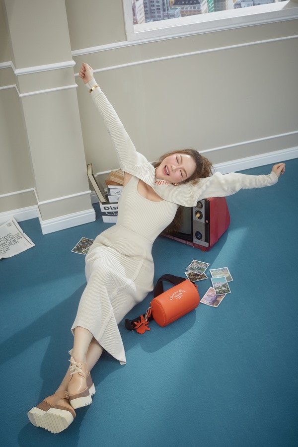 Với bộ váy dệt kim tông trắng xám Calvin Klein, Lý Nhã Kỳ chọn phối túi cam trẻ trung của Dior, sành điệu với trang sức kim cương. Vì mẫu váy đã rất bắt mắt nên người đẹp không quá cầu kỳ khi chọn kiểu tóc. Nữ diễn viên đánh rối nhẹ nhàng, trang điểm tông hồng cam ngọt ngào, tươi tắn.