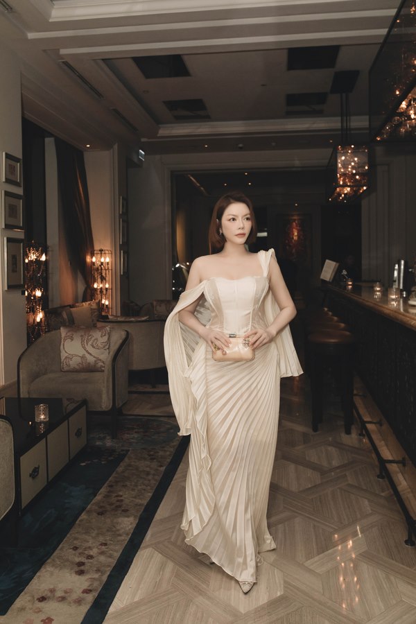 Diễn viên Kiều nữ và đại gia chọn chiếc váy được thực hiện cầu kỳ, với chi tiết chiết eo giúp tôn lên đường cong nóng bỏng. Phần chân váy được sử dụng kỹ thuật xếp ly, tạo hiệu ứng khi di chuyển. Người đẹp cho thấy sự biến hóa của mình trong phong cách thời trang. Khi đến một sự kiện không phải thuộc lĩnh vực giải trí, cô ưu tiên chọn thiết kế thanh lịch nhưng vẫn khéo léo khoe vóc dáng thon thả.