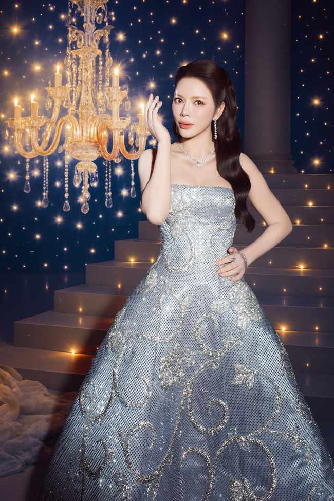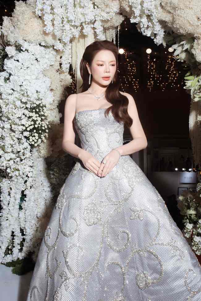 Lý Nhã Kỳ chọn cho mình một thiết kế đầm dạ hội tinh xảo, thể hiện rõ nét phong cách couture đặc trưng của Chung Thanh Phong. Bộ đầm với phần corset ôm sát thân trên giúp tôn lên vòng eo thon gọn và đường cong quyến rũ của người đẹp. Phần chân váy xòe chữ A bồng bềnh, tạo nên sự bay bổng và lộng lẫy, biến Lý Nhã Kỳ thành tâm điểm của sự kiện. Vẻ đẹp kiêu sa, thần thái quý phái của cô đã khiến không ít người phải trầm trồ, khẳng định vị thế một biểu tượng thời trang.
