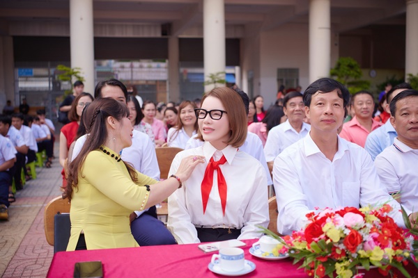 Diễn viên xúc động khi gặp lại thầy cô giáo cũ, ôn chuyện xưa. Cô nói: “Nhìn các em, tôi nhớ về thời áo trắng của mình. Tôi biết ơn thầy cô rất nhiều. Họ giống như ba mẹ thứ hai của tôi, không chỉ dạy kiến thức mà còn giúp tôi nên người”.