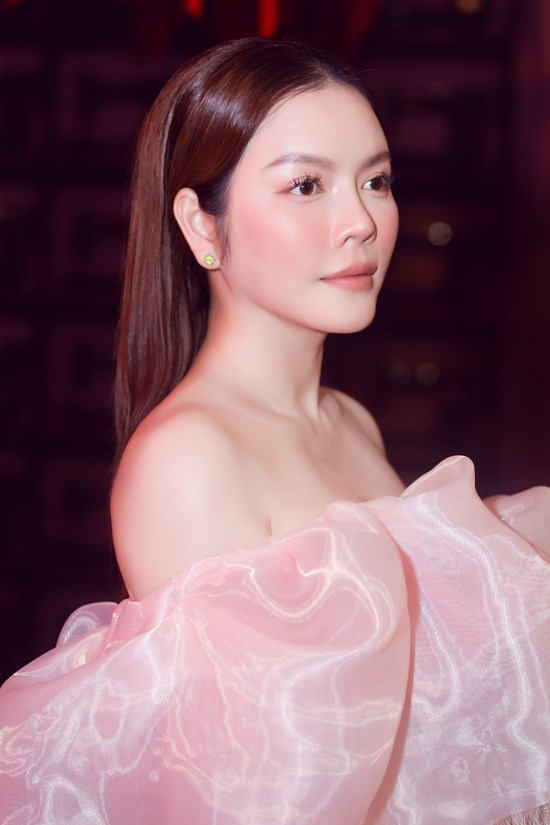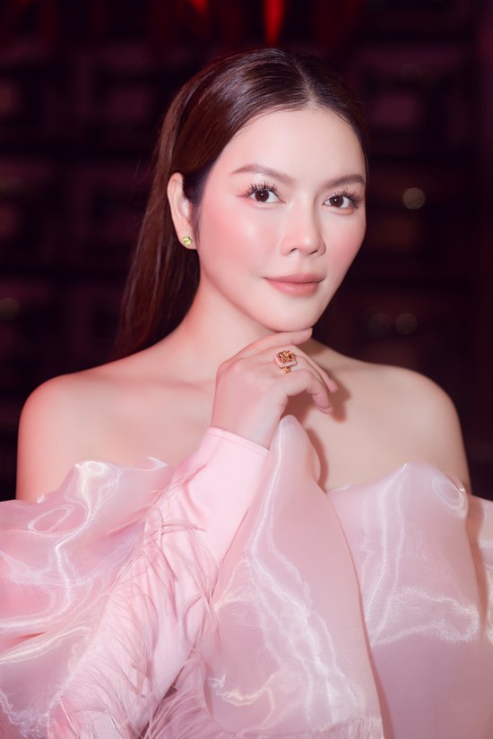 Trong vai trò Lãnh sự danh dự Romania, Lý Nhã Kỳ gây thương nhớ với áo dài là kiểu cách tân màu sắc ngọt ngào, trẻ trung. Phần voan bồng bềnh tựa như áng mây, phối tà dài cùng chất liệu lụa cao cấp để tôn dáng. Màu hồng phấn rất nền nã đồng thời vai trần khoe được vóc dáng gợi cảm.