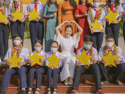 Trong buổi về thăm trường, Lý Nhã Kỳ trao 20 suất học bổng cho các học sinh giỏi toàn diện. Người đẹp xúc động khi phát biểu trước toàn thể thầy cô và các học sinh. Cô mong có thể truyền cảm hứng cho các mầm non tương lai phấn đấu và quyết liệt với đam mê.
