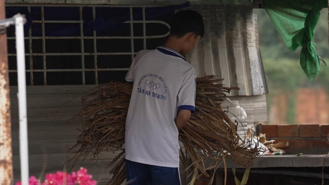 Trước đây, bà Thủy kiếm tiền bằng việc may túi xách, sau chuyển sang đan lục bình kiếm 5.000 – 10.000 đồng/sản phẩm. Sức khỏe bà Thủy không tốt, bị K gan giai đoạn 4 và K đại tràng. Bà Thủy vừa phẫu thuật ruột cách đây không lâu và vẫn đang phải hóa trị liên tục nên không làm việc được nhiều. Bà Thủy rất sợ mình không còn nhiều thời gian, không thể chống chọi với bệnh tật mà bỏ lại Quý phải bơ vơ thêm một lần nữa.