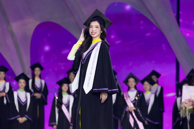 Trình diễn Áo dài: Top 39 thí sinh thướt tha trong BST “Sắc Màu Thanh Xuân” đầy tính nghệ thuật của NTK Trung Đinh. Mỗi tà áo dài không chỉ tôn vinh vẻ đẹp truyền thống mà còn thể hiện nét tươi trẻ, duyên dáng của thế hệ sinh viên.