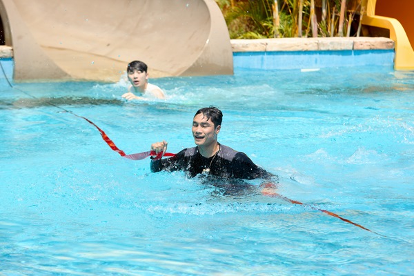 Ở vòng thứ hai là bơi lội, Mạnh Kiên là người giành chiến thắng.