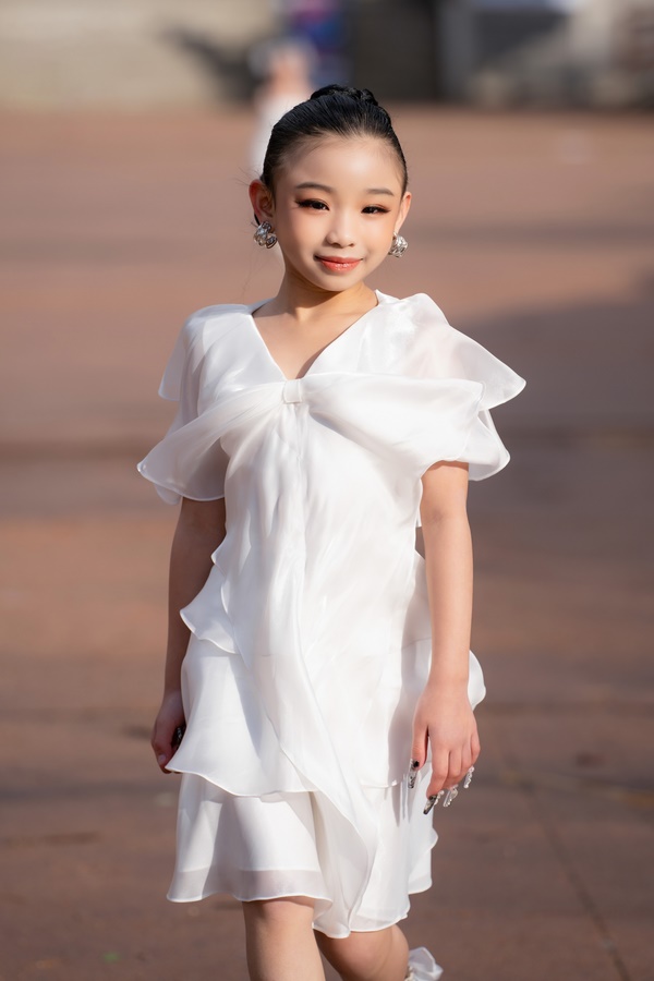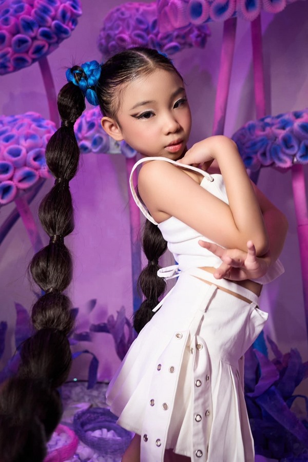Chị Katty nhận xét, từ khi học lớp người mẫu, bé trở nên tự tin hơn, khả năng catwalk được cải thiện nhiều. Tuy còn nhỏ, bé có suy nghĩ sâu sắc và rất có tinh thần trách nhiệm. Trước mỗi show diễn, bé luôn hỏi cặn kẽ thời gian, suy nghĩ nhiều về buổi diễn, về việc make up… Đến giờ diễn bé sẽ quên hết mọi chuyện, kể cả ăn. Chỉ sau khi hoàn thành show, bé mới biết đến cơn đói và nhờ mẹ chuẩn bị đồ ăn giúp.