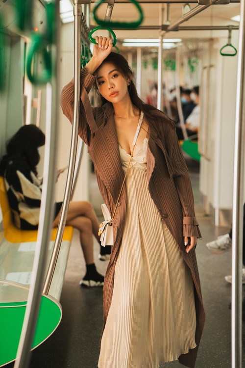 Để bắt kịp trend với các bạn trẻ, Hải Anh cũng đã có những shoot hình cực xịn, cực so deep tại tàu điện Cát Linh Hà Đông. Nếu bạn đã xem những thước phim, bộ truyện Hàn Quốc, Nhật Bản thì chắc đã không còn xa lạ gì với những khung hình trên tàu điện.
