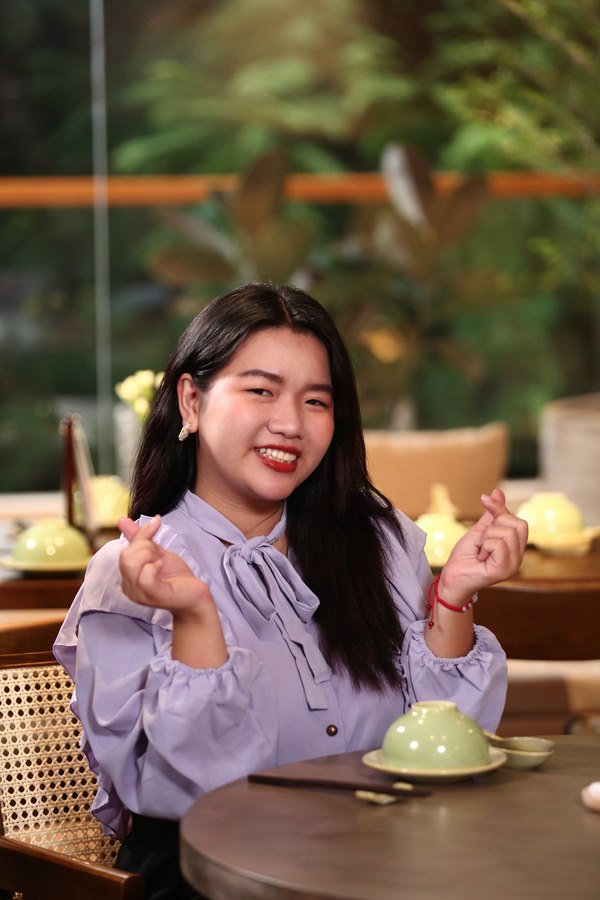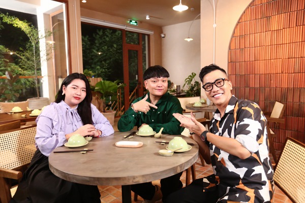 Trịnh Tú Trung thích thú khi được Hoàng Rapper và Chen Ru Lu mời thưởng thức ẩm thực chay cực ngon tại Quán ăn hạnh phúc.