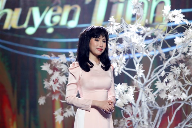 Bên cạnh những tiết mục “chào sân” mùa 8 đầy ấn tượng của các thí sinh Người Kể Chuyện Tình, MC Phương Uyên cũng không hề kém cạnh khi xuất hiện duyên dáng trong trang phục áo dài truyền thống. Bộ trang phục được điểm xuyết tinh tế bởi những hạt cườm nổi và thiết kế tay phồng, giúp nữ MC nổi bật mà vẫn giữ được nét thanh lịch.