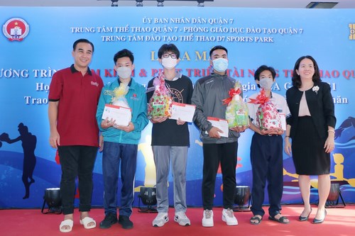 Mới đây, chương trình “Tìm kiếm và phát triển tài năng thể thao” được tổ chức với sự góp mặt các vận động viên Quận 7 tham gia SEA Games 31 tại Việt Nam. Bên cạnh đó, BTC cũng trao học bổng cho các vận động viên có hoàn cảnh khó khăn.