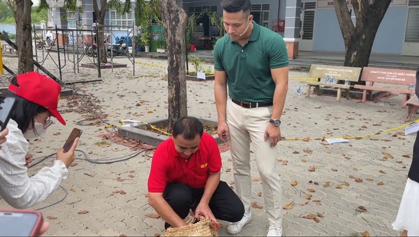 Sau khi mời bà con ăn vẫn dư nửa rổ, nam MC hào hứng cho biết anh sẽ mang về nhà để dành ăn tiếp khiến ai cũng bật cười.