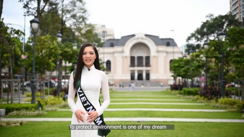 Gửi đến Miss Earth Video Eco chỉn chu và đầy cuốn hút, Vân Anh nhận được nhiều câu hỏi của giám khảo trong phần phỏng vấn với chủ đề về môi trường. Người đẹp Việt Nam tự tin chia sẻ thông điệp về bảo vệ môi trường: “Ô nhiễm rác thải nhựa là một vấn đề về môi trường ngày nay. Hàng triệu tấn rác thải nhựa thải ra trên thế giới mỗi năm, rất nhiều sinh vật biển bị giết hại do rác thải nhựa trên biển. Trong cuộc sống hàng ngày, tôi tự ý thức với bản thân về việc bảo vệ môi trường qua những việc làm như: khi đi siêu thị thì tôi luôn tự mang túi vải của mình, hạn chế sử dụng túi nilon. Bên cạnh đó, tôi sử dụng ống hút bằng cỏ để thay thế ống hút nhựa và đem tặng bạn bè, những người xung quanh tôi để khuyến khích họ dùng sản phẩm eco để bảo vệ môi trường.