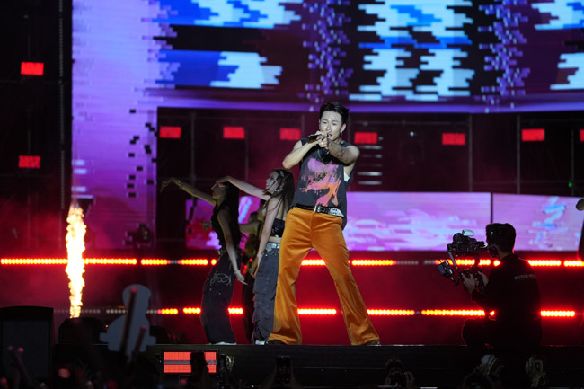 Sân khấu tiếp tục với Quân A.P – giữ vững phong độ bằng các bản hit quen thuộc, để rồi nhường sân cho Gemini Hùng Huỳnh. Anh mang đến một set diễn ấn tượng với hình ảnh “tiên tử” cổ trang và phần trình diễn vũ đạo gợi cảm xúc thị giác mạnh mẽ. Cả sân khấu thực sự bùng nổ khi ba cái tên Gemini Hùng Huỳnh – Quân A.P – HURRYKNG hội tụ trong bản hit “Đầu đội sừng”. Đây là lần hiếm hoi đội hình đầy đủ của ca khúc được trình diễn trực tiếp, khán giả được thưởng thức trọn vẹn sự kết hợp hài hòa giữa 3 nghệ sĩ tài năng. Gemini Hùng Huỳnh đã thể hiện những động tác vũ đạo mượt mà, đầy quyến rũ khiến khán giả không thể rời mắt. Quân A.P với chất giọng siêu cuốn đã làm chủ được không gian, trong khi HURRYKNG mang đến những verse rap đầy lửa khiến cả quảng trường như bùng nổ. Sự kết hợp này tạo nên một màn trình diễn hoàn hảo, thể hiện được tinh thần đoàn kết và tài năng của từng cá nhân. Ngay sau đó, HURRYKNG tiếp tục solo với loạt tiết mục năng động mang màu sắc riêng, trước khi bắt tay cùng MANBO trong “Hẹn gặp em dưới ánh trăng”.