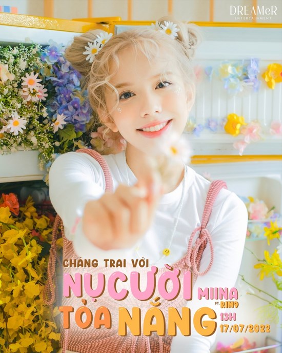 Tấm poster của MiiNa mang đến một tạo hình vô cùng đáng yêu của nữ ca sĩ với tóc cột hai chùm, điểm xuyến bằng những đóa hoa cúc trắng. Vây quanh MiiNa là một căn phòng với đầy các loại hoa sặc sỡ, hứa hẹn mang đến cho khán giả những khung hình tuyệt đẹp khi MV chính thức ra mắt. Là em út của nhóm, MiiNa chia sẻ trước thềm ra mắt sản phẩm khá đặc biệt này: “Mình thực sự rất hồi hộp khi ra mắt sản phẩm Chàng Trai Với Nụ Cười Tỏa Nắng, cảm giác rất khác so với ra mắt các sản phẩm khi có đầy đủ các thành viên của nhóm. Mình lựa chọn một giai điệu vừa quen vừa lạ của anh RIN9 để thể hiện, mong muốn lan tỏa sự ấm áp của ánh nắng ngày hè đến cho mọi người. Mong mọi người mở lòng và đón nhận cũng như có thể tìm được một phần nào đó của mình trong ca khúc vô cùng đáng yêu này”.