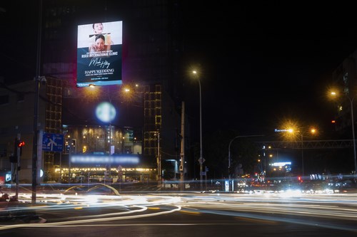 Hình ảnh Minh Hằng cùng dòng chữ “Đám cưới hạnh phúc” được xuất hiện dày đặc trên các bảng quảng cáo lớn tại TP.HCM.