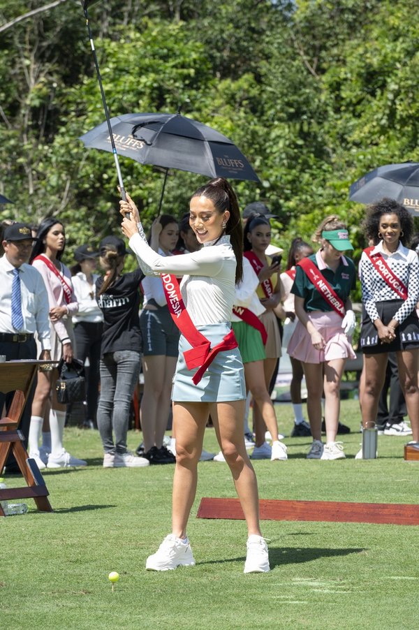 Hôm 6.2, gần 40 thí sinh đã có những trải nghiệm đáng nhớ tại The Bluffs Grand Ho Tram Strip – một trong những sân golf tốt nhất châu Á. Dàn mỹ nhân quốc tế nổi bật trên sân cỏ với vẻ rạng rỡ, tràn đầy năng lượng và tự tin khoe sắc vóc gợi cảm trong loạt trang phục thể thao năng động, trẻ trung. Các thí sinh được làm quen với bộ môn golf đồng thời tham gia một giải đấu mini.