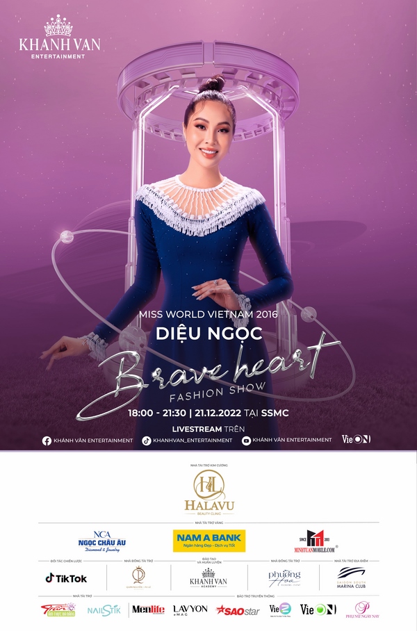 Như vậy, danh tính các người đẹp tham gia “Brave Heart Fashion Show 2022″ đã dần được hé lộ. Khán giả có thể theo dõi chương trình trên các kênh fanpage Khánh Vân Entertainment, TikTok khanhvan_entertainment, YouTube Khánh Vân Entertainment và ứng dụng VieON. “Brave Heart Fashion Show 2022″, diễn ra ngày 21/12/2022 tại Saigon South Marina Club (SSMC), Quận 07. “Brave Heart Fashion Show 2022” có sự đồng hành của các đơn vị: Thẩm mỹ viện Halavu Beauty Clinic – Nhà tài trợ kim cương, Nam A Bank – Nhà tài trợ vàng, Minh Tuấn Mobile – Nhà tài trợ vàng, Kim cương Ngọc Châu Âu – Nhà tài trợ vàng, Ẩm thực Trần – Nhà tài trợ bạc, các nhà đồng tài trợ: Phường Hoa, Học viện Quân Nguyễn & Pu Lê, NailStik, Nhà tài trợ địa điểm – Saigon South Marina Club (SSMC), TikTok – Đối tác chiến lược, các đơn vị bảo trợ truyền thông: SaoStar, VieZ, VieON, tạp chí Lavyon, tạp chí Men&Life, Phụ Nữ Ngày Nay.