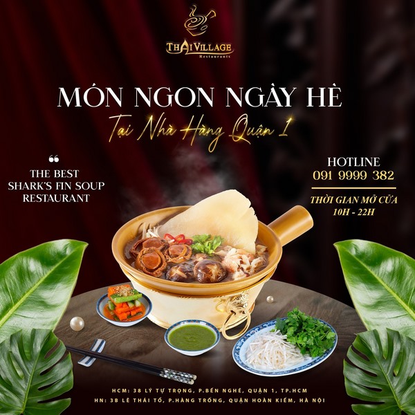 Nhà hàng Thai Village nổi danh với món soup vi cá. Soup vi cá là một trong những món ngon có lợi cho sức khoẻ, với nguyên liệu thượng hạng nhằm cung cấp các chất dinh dưỡng, góp phần tăng cường hệ miễn dịch, nâng cao sức khỏe trong mùa hè nắng nóng.