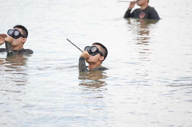 Không dừng lại ở đó, anh tiếp tục thử sức với phần huấn luyện ngụy trang dưới nước cùng ống thở, được xem là thử thách khắc nghiệt nhất tập này. Nhiều nghệ sĩ chật vật vì uống nước, sặc hay mất nhịp thở, nhưng MONO vẫn giữ tinh thần vững vàng, hoàn thành trọn vẹn nhiệm vụ và được đánh giá là người có khả năng “ẩn mình” dưới nước lâu nhất.