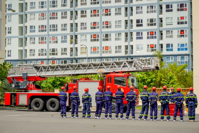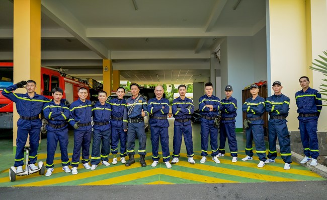 Trong tình huống thực chiến lần này, Trung tá Lê Tấn Châu chỉ huy toàn bộ lực lượng tham gia xử lý và phân làm 4 tổ công tác: Chữa cháy, Xe thang, Cứu nạn cứu hộ và Trinh sát – Sơ tán.