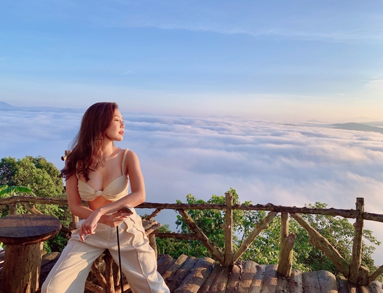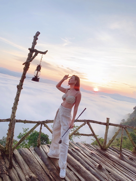 “Cảm giác được hoà mình với thiên nhiên giúp Hải Anh thư giãn nhiều, tưởng như chỉ cần một cái chạm tay là tới mây rồi” – cô nàng chia sẻ.