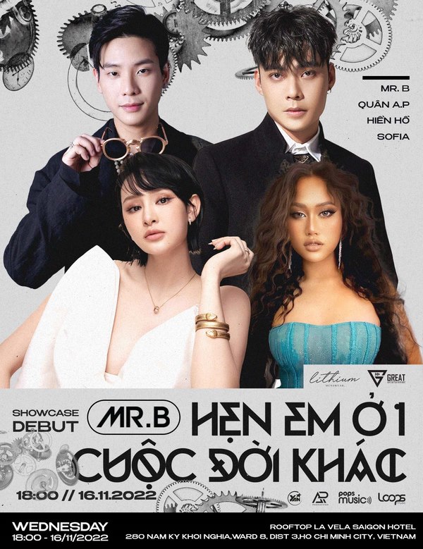 Showcase sẽ được diễn ra vào lúc 18h ngày 16/11 tại RoofTop La Vela SaiGon Hotel. Từ MV debut chính thức, khán giả hoàn toàn có thể thấy được tâm huyết và sự đầu tư chỉn chu của Mr.B và ê-kíp, chính vì vậy, showcase sắp tới hứa hẹn sẽ là một “bữa tiệc âm nhạc” hấp dẫn, xứng đáng được mong chờ.