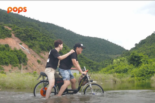 Dưới tay lái “lụa là” của Trường Giang, xe máy điện trèo đèo thì lật, lội suối thì tắt máy. “Cái này cái gì cũng hư, chỉ có cái thắng nó không hư thôi” vì xe không có thắng