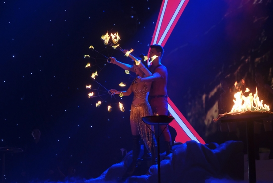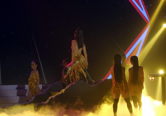Mở màn là tiết mục của nhân tố Mỹ Kim cùng với người hỗ trợ Minh Tuấn. Luôn tìm tòi và sáng tạo qua mỗi vòng thi, Mỹ Kim và đồng đội đã mang đến tiết mục mãn nhãn. Nhân tố trổ tài múa côn lửa với ngọn lửa màu xanh đẹp mắt. Mỹ Kim nâng cấp phần trình diễn của mình khi diễn đôi, đòi hỏi sự ăn ý và phối hợp nhịp nhàng. Sự mạo hiểm và cống hiến của nhân tố được ban giám khảo đánh giá cao.