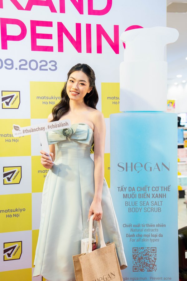 Vừa qua, tại cửa hàng Matsumoto Kiyoshi – Vincom Mega Mall Times City, Á hậu Quốc tế Thúy Vân đã tổ chức buổi giới thiệu thương hiệu mỹ phẩm thuần chay & chữa lành SHEGAN do cô sáng lập, ở hệ thống cửa hàng đầu tiên tại Hà Nội của chuỗi bán lẻ mỹ phẩm & sức khoẻ hàng đầu Nhật Bản Matsumoto Kiyoshi.
