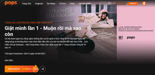 Độc giả hãy nhanh tay đặt vé xem livestream đêm Giật mình lần 1 – Muộn rồi mà sao còn của nghệ sĩ Sơn Tùng M-TP và đón xem chương trình vào lúc 20h13 ngày 24/4/2021 độc quyền trên website https://pops.vn/muonroimasaocon