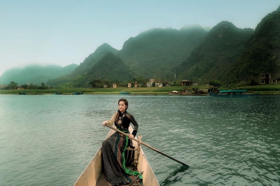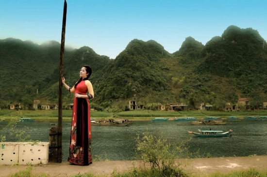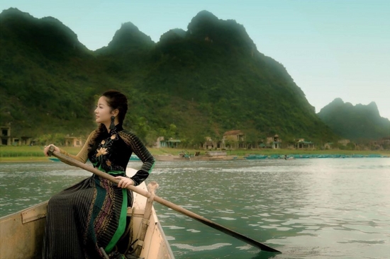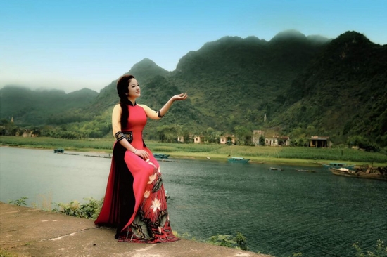 BST “Đại sứ áo dài Việt Nam” của NTK Việt Hùng mà Nghệ sỹ Thúy Nga mang trên mình được chụp trên dòng sông Son- Quảng Bình sử dụng chất liệu lụa truyền thống của Thái Tuấn, để tạo ra những chiếc Áo dài thời trang mang hoa văn cách điệu đẹp lụa là.