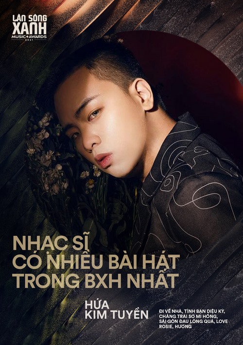 Hứa Kim Tuyền cũng là nhạc sĩ có nhiều ca khúc nằm trong BXH nhất năm 2021 với 6 bài: (Đi về nhà, Tình bạn diệu kỳ, Chàng trai sơ mi hồng, Sài Gòn đau lòng quá, Love Rosie, Hương và Yêu không cần ép). 2021 là một năm cực kỳ sung sức của Hứa Kim Tuyền, hứa hẹn khả năng anh sẽ “làm nên chuyện” của giải Làn sóng xanh năm nay. Năm 2020 vừa qua, Hứa Kim Tuyền cùng với ekip của Amee cũng đã đạt giải Album của năm cho album “Dreamee”.