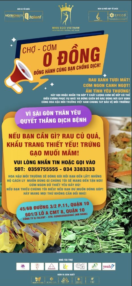 “Một miếng khi đói bằng một gói khi no”, hoạt động ý nghĩa từ mô hình “Chợ Rau 0 đồng” và “Chợ Cơm 0 đồng” của Ban Tổ chức cuộc thi Hoa hậu Môi trường Việt Nam đã góp phần thiết thực hỗ trợ cho nhiều người dân còn khó khăn trên địa bàn TP.Hồ Chí Minh, lực lượng tuyến đầu chống dịch và người dân trong khu vực phong tỏa, kịp thời động viên bà con cố gắng vượt qua dịch bệnh.