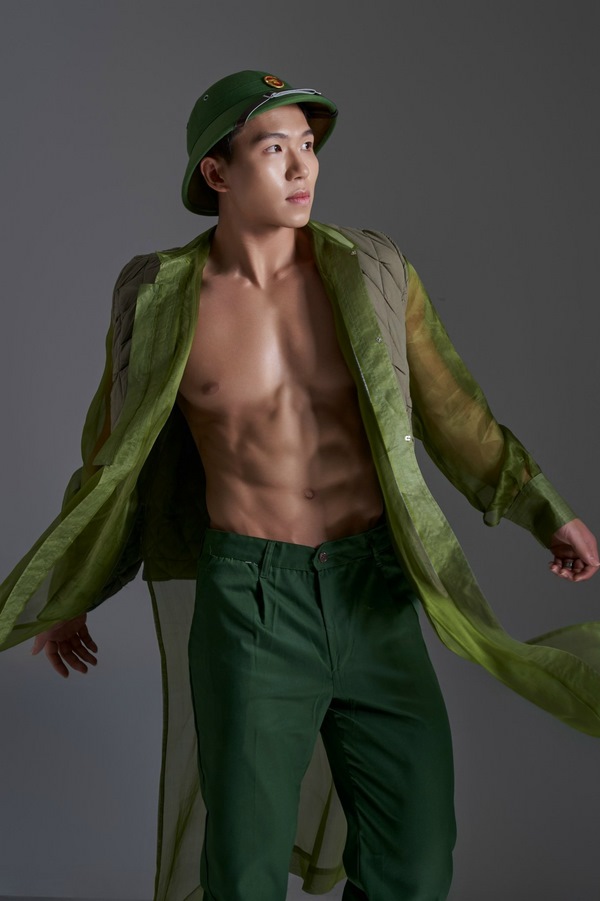 Đem đến cuộc thi năm nay, ngoài một ý chí mạnh mẽ và tinh thần chiến đấu quật cường, Nguyễn Hoàng Tùng còn được NTK Vũ Việt Hà dày công chuẩn bị bộ trang phục dân tộc đặc biệt được làm từ vải đũi và tơ tằm trong suốt, được lồng ghép tinh tế trong đó là hình ảnh chiếc áo dài truyền thống Việt Nam cùng với trang phục của các chiến binh bảo vệ và xây dựng hòa bình cho tổ quốc.