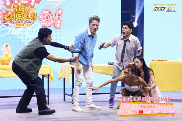 Trong lúc hai diễn viên nữ còn đắn đo, Võ Tấn Phát đã bất ngờ xuất chiêu, đẩy Nguyên Thảo té sõng soài xuống sàn khiến cô trở tay không kịp. Dù rất đau, nhưng Nguyên Thảo đã duyên dáng bắt trọn vẹn miếng hài của đồng nghiệp để hoàn thành vai diễn trong tiểu phẩm. Tiếp nối ý tưởng của Võ Tấn Phát, Hữu Đằng không ngại ngần xô đẩy Nguyên Thảo té thêm một lần nữa, để tăng thêm phần hài hước trong câu chuyện.Từ tình huống độc lạ, trong vai người bán hàng, Võ Tấn Phát và Hữu Đằng bất chấp dàn cảnh xô xát người mua hàng Nguyên Thảo để cô nàng phải chọn lựa sản phẩm của mình mà bộ ba này đã được về chung một đôi. Và do đó đó, Hoàng Phi, Nam Thư, Trung Tín sẽ là đội còn lại.