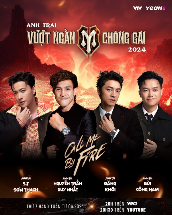 Chương trình truyền hình thực tế truyền cảm hứng Anh Trai Vượt Ngàn Chông Gai 2024 (tên tiếng Anh: Call Me By Fire Vietnam) dự kiến sẽ được trên VTV3 lúc 20g – 21g30 và hệ thống kênh YouTube thuộc YeaH1 Digital lúc 20g30 bắt đầu từ tháng 6/2024. “Call Me by Fire” do MangoTV sở hữu sẽ là chương trình truyền hình thực tế tiếp theo được tập đoàn YeaH1 mua bản quyền đầu tư để Việt hoá và được sản xuất mùa giải đầu tiên vào năm 2024. Tại Việt Nam, tập đoàn YeaH1 chính là đơn vị duy nhất sở hữu bản quyền sản xuất chương trình “Call Me by Fire” của MangoTV với phiên bản Việt hoá Anh Trai Vượt Ngàn Chông Gai.