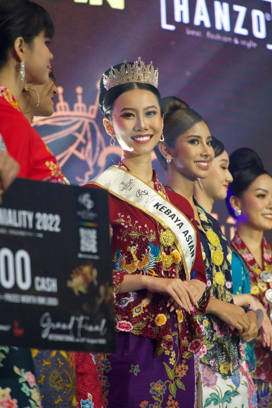 Kết quả chung cuộc, giải thưởng Miss KBJ Ratu Kebaya International 2022 thuộc về Chin Yi Jing (Malaysia), Á hậu 1 – Mary Joy Araracap (Philippines), Á hậu 2 – Villanueva Janhelen (Philippines), Á hậu 3 – Naruewan Thepnarong (Thái Lan), Á hậu 4 – Nguyễn Vĩnh Hà Phương (Việt Nam)… Á hậu 2 Miss Cambodia 2021 Houn Srey Khouch dừng chân tại top 8 chung cuộc cùng giải thưởng phụ Miss Elegant 2022.
