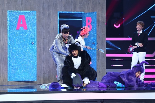 Câu hỏi đầu tiên, trong ca khúc Vệt nắng cuối trời của nhạc sĩ Tiến Minh nằm trong bộ phim nào? Đội của nghệ ĩ Đình Toàn chọn đáp án chính là bộ phim cùng tên Vệt nắng cuối trời. Đình Toàn mở cánh cửa chứa câu trả lời đúng, gặp ngay “công chúa” Nguyên Vũ. Đình Toàn hoảng hốt nói, phải chi đội anh gặp phải sói thì vui và đỡ sợ hơn là chứng kiến diện mạo “công chúa” Nguyên Vũ. Đến phần Bình Tinh trả lời, cô xui xẻo gặp sói Nguyên Thảo nhào ra tóm gọn khủng long Bình Tinh. Câu hỏi thứ 3, Đình Toàn gặp lại Nguyên Vũ, anh “3 chân 4 cẳng” vọt lẹ.