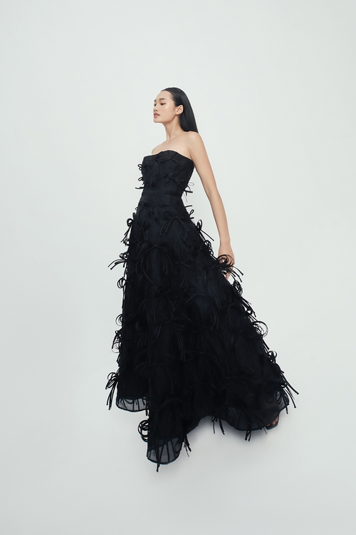 Xuyên suốt bộ sưu tập, hình ảnh chiếc nơ được xuất hiện linh hoạt trong nhiều hình dạng khác nhau. Từ những chiếc nơ 3D mềm mại bay bổng được đính nổi, dáng hình học, hay nơ 2D to bản được thêu ấn tượng. Tất cả đều gợi liên tưởng đến sắc thái của người phụ nữ: khi nữ tính khi gai góc, lại có lúc mạnh mẽ và khác lạ – cho thấy những ẩn ý tinh tế và điểm nhìn khác lạ của Công Trí khi thực hiện bộ sưu tập.
