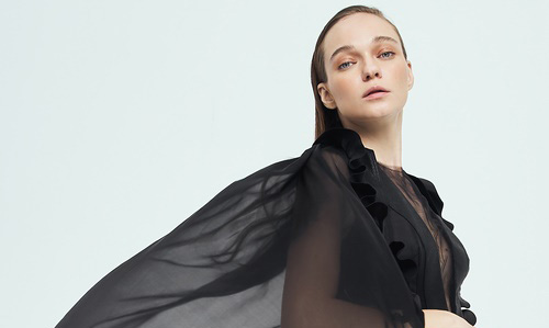 Nhà thiết kế mang trở lại những phom đầm quây và đầm lệch vai như muốn khoe trọn khuôn cổ thanh mảnh và phần xương quai xanh quyến rũ, đồng thời khoét sâu phần cổ chữ V để tạo điểm nhấn cho các thiết kế mùa này.