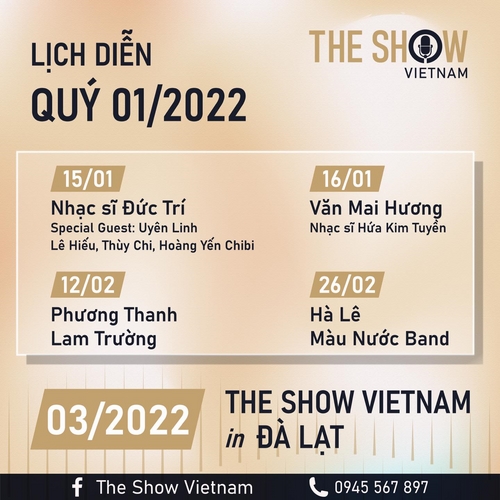 Cùng đồng hành với Nhạc sĩ Đức Trí để cùng kể lại những câu chuyện tình qua âm nhạc tại The Show Vietnam là 4 nghệ sĩ tài năng: Uyên Linh, Lê Hiếu, Thùy Chi và Hoàng Yến Chibi. Đây đều là những tên tuổi từng gắn bó với các nhạc phẩm của Đức Trí và sẽ đóng vai trò như những “sứ giả” truyền tải một mảnh tâm tư, tình cảm của người nhạc sĩ tài năng đến công chúng. Đây cũng là đêm nhạc đầu tiên của The Show Vietnam diễn ra trong năm 2022, hứa hẹn mở màn cho chuỗi những đêm nhạc chất lượng, quy tụ những nghệ sĩ đầy tài năng.
