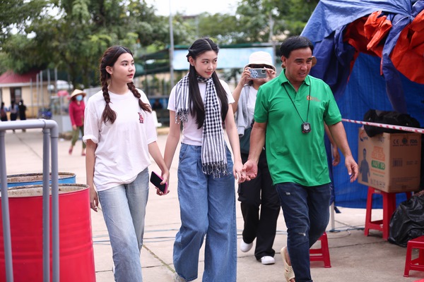 Cụ thể, Lọ Lem và Hạt Dẻ đã ghé thăm bố tại buổi ghi hình chương trình Mái ấm gia đình Việt ở Bến Tre. Tuy chỉ diện trang phục là áo thun và quần jeans vô cùng đơn giản nhưng hai ái nữ nhà Quyền Linh vẫn khiến dân tình xuýt xoa ngay khi vừa xuất hiện. Hai chị em nắm chặt tay nhau thể hiện sự thân thiết, gần gũi với nhau. Qua ảnh không qua chỉnh sửa, con gái nam MC một lần nữa gây bão vì nhan sắc lẫn vóc dáng có thể trở thành đối thủ “nặng ký” trong các cuộc thi nhan sắc ở tương lai.