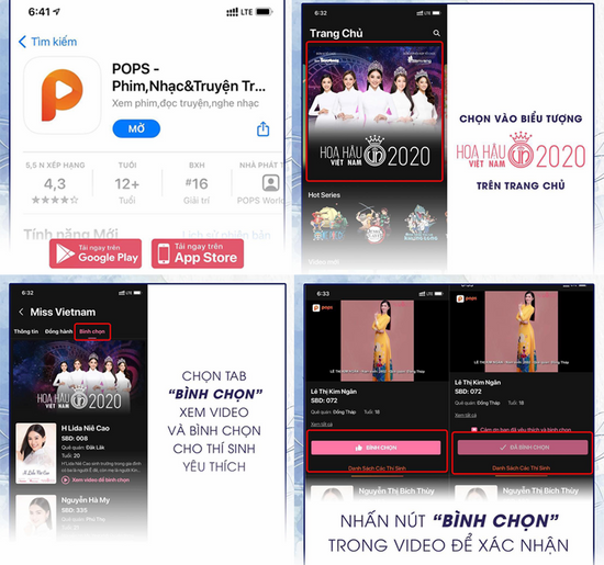 Bình chọn cho các thí sinh Hoa hậu Việt Nam trên Ứng dụng POPS – cổng bình chọn chiếm tỷ trọng cao nhất HHVN 2020