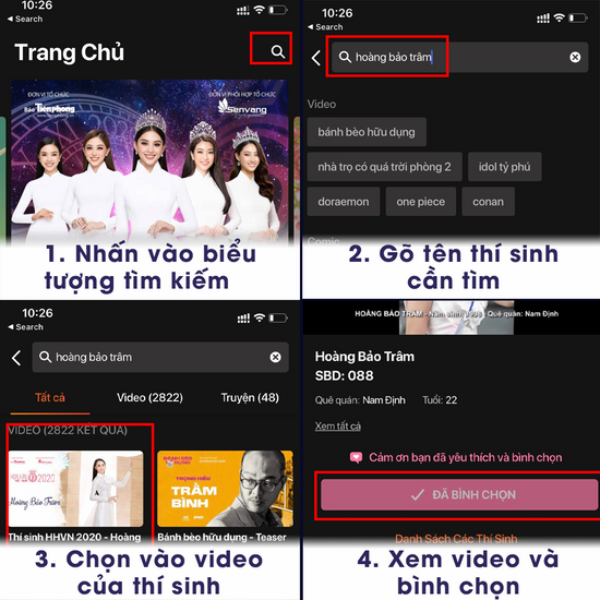 Các khán giả có thể nhập tên thí sinh để tìm kiếm nhanh hơn