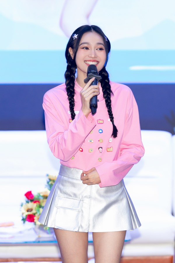 Diện trang phục trẻ trung đậm chất “tuổi xì tin”, Ninh Dương Lan Ngọc khiến các bạn sinh viên hò hét, cổ vũ không ngừng ngay khi xuất hiện. Nữ diễn viên tiết lộ buổi talkshow này là cơ hội để cô thực hiện một lời hứa với Bác sĩ Hoàng Quốc Tưởng cách đây 2 năm, khi dịch COVID-19 đang diễn ra phức tạp. Thời điểm ấy, cô đã vô cùng xúc động khi theo dõi hình ảnh những sinh viên ĐH Y Dược TP.HCM tình nguyện lên đường tham gia chống dịch mà Bác sĩ Tưởng gửi cho mình. Vì thế, Ninh Dương Lan Ngọc tự hứa vào một dịp nào đó sẽ ghé thăm trường để bày tỏ sự cảm kích.