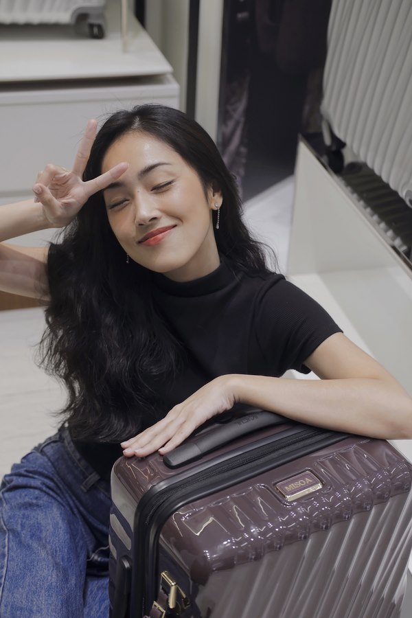 Katleen Phan Võ thể hiện khả năng mix and match với phụ kiện du lịch nhà TUMI. Cô chọn chiếc vali màu đặc biệt cùng tông với set đồ của mình.