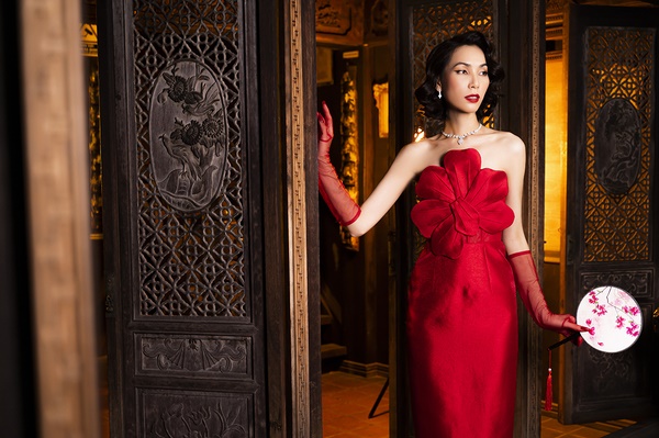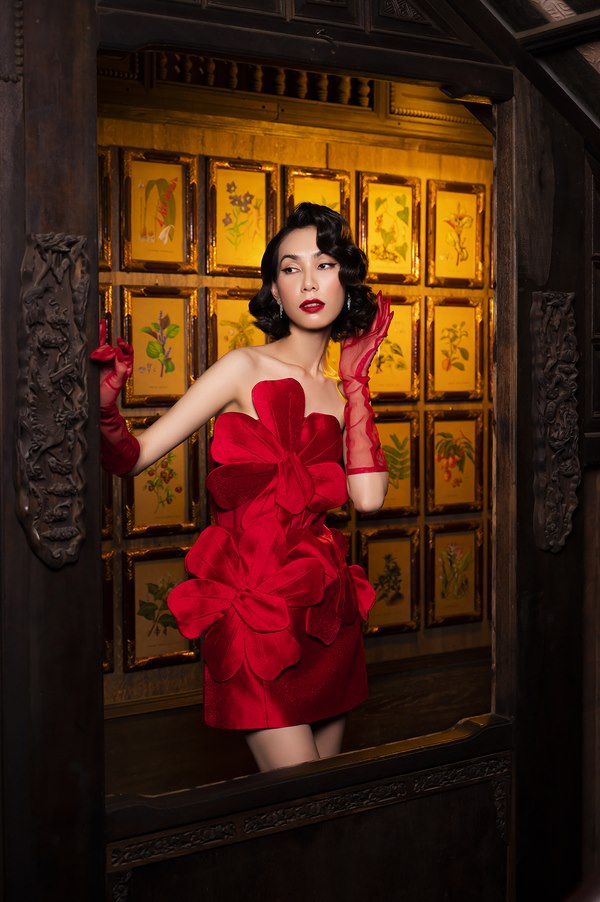 Đúng với cái tên đầy nên thơ, NTK Nguyễn Minh Công sẽ đưa khán giả đến khu vườn mùa xuân nơi những đóa hoa rực rỡ, ngập tràn sức sống tận hưởng nắng xuân – xinh đẹp, mộng mơ nhưng rất kiên cường, mạnh mẽ ở “Nụ tầm xuân trong gió”. BST này mang đậm không khí mùa lễ hội với sắc đỏ và nét hiện đại, thanh lịch, quyến rũ pha chút gì đó truyền thống, cổ điển.